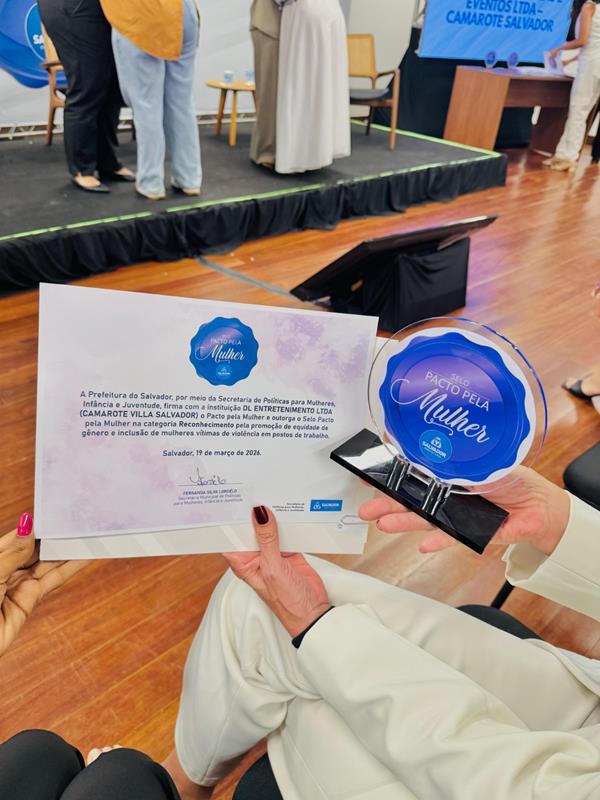 Nesta quinta-feira, 19 de março, o Camarote Villa recebeu o Selo Pacto Pela Mulher, iniciativa da Secretaria Municipal de Políticas para as Mulheres, Infância e Juventude de Salvador (SPMJ).