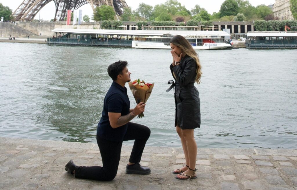 O momento aconteceu em Paris, com a Torre Eiffel como testemunha de uma das decisões mais importantes da vida do casal. Em clima de emoção e cumplicidade, Guilherme declarou: “A gente não precisa de muito quando tem a certeza do amor. E com a Élida, eu tenho todas as certezas que preciso para construir uma vida.”