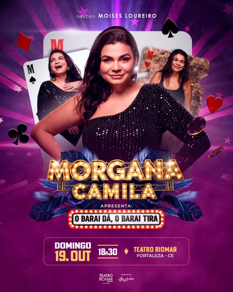 A comediante,influenciadora, publicitária, mãe e empresária Morgana Camila traz seu primeiro espetáculo solo ao palco com a estreia de “O Barai dá, O Barai tira”, no dia 19 de outubro de 2025, no Teatro Riomar Fortaleza, um dos maiores e mais renomados teatros do Brasil.