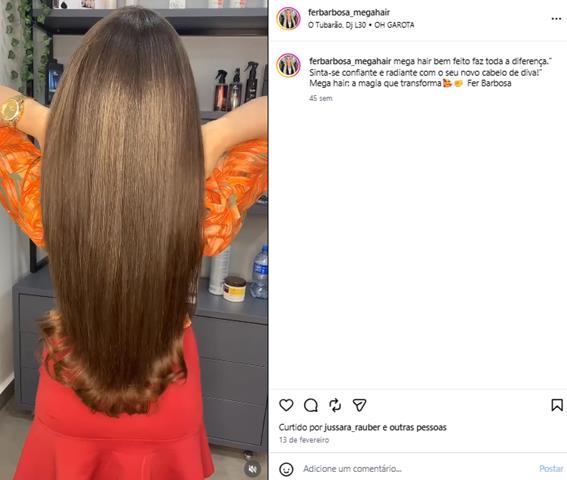 Fernanda Barbosa trabalha com cabelos naturais de 58 a 75 centímetros, disponíveis nas versões liso e ondulado, garantindo um resultado sofisticado e extremamente natural.