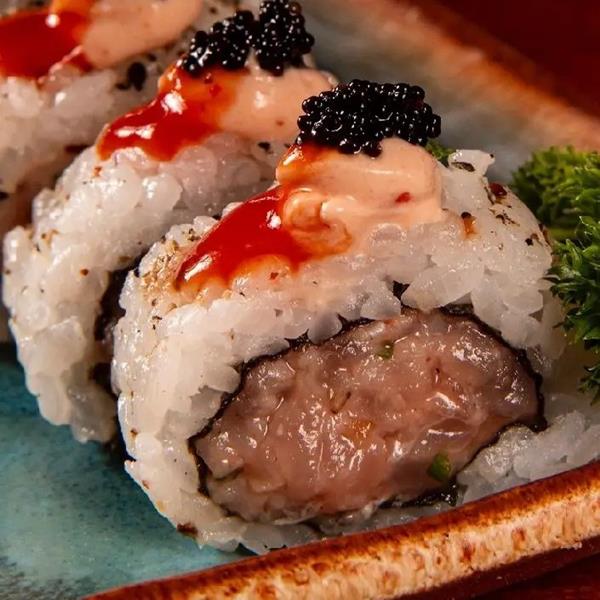 Para quem prefere explorar o picante em versões orientais, o Iummy Japanese Restaurant oferece duas opções que fazem parte do rodízio premium e agradam tanto curiosos quanto fãs de sabores marcantes. Um deles é o Joe com geleia de pimenta, um prato que combina a delicadeza da culinária japonesa com o contraste agridoce e levemente ardido da pimenta, criando uma experiência equilibrada e surpreendente. A outra opção é o sushi enrolado ao avesso, preparado com arroz e gergelim, recheado com tartar de atum picante, finalizado com pimenta sriracha e ovas de tobiko black, que acrescentam textura e intensidade ao prato.