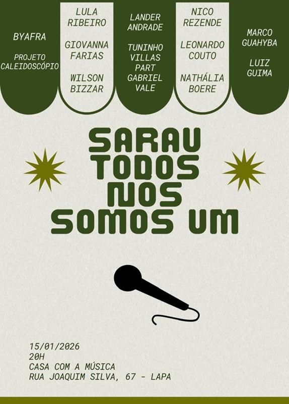 O movimento de artistas “Todos Nós Somos Um” realiza o seu primeiro sarau em 2026 no ponto de cultura Casa com a Música, na Lapa, no dia 15 de janeiro, quinta-feira, às 20h. Será uma noite muito especial marcada pela homenagem à cantora e compositora Giovanna Farias, filha do lendário compositor e cordelista paraibano, Vital Farias.