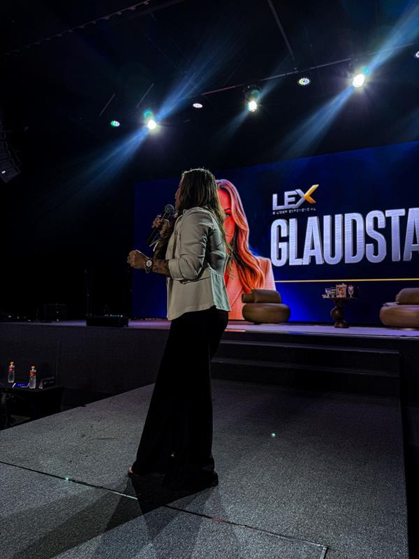 Um dos pontos centrais da palestra foi a forma como ela chegou até aquele palco. Questionada sobre coragem, conexões e oportunidades, a resposta foi direta: comportamento. Glaudstar reforçou que não existe fórmula mágica, apenas atitude, presença e a decisão de não deixar oportunidades passarem.