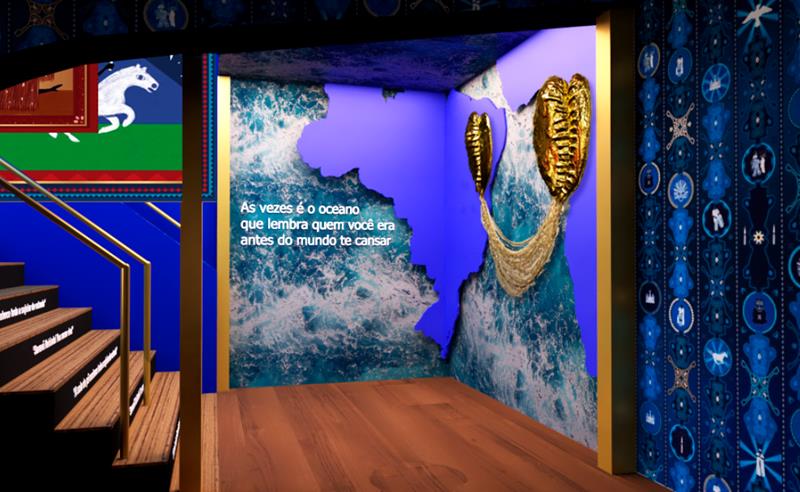 Além disso, na subida para o segundo andar, que é sempre um ponto emblemático do Camarote -, haverá dois búzios gigantes da artista plástica Julia Cavalcanti Di Siqueira, que representam dois pulmões – ligando o Brasil à África.”Essas peças da Julia representam o Custódio, que liga os povos escravizados no Brasil com a sua terra de origem. Uma representação de elo. Junto vem uma frase sobre o oceano, que faz lembrar dessa ligação, dessa origem da Terra”.